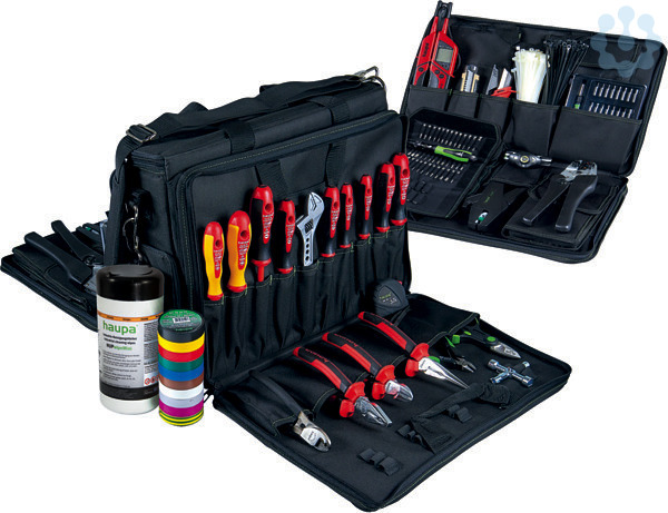 Servicetasche ?Supply Max?mit Dokumenteneinschubfach, Einsteckfächer für Werkzeuge und Messgeräte, Kleinteiletasche, große Einsteckfächer, Gummibandschlaufen, separates Hauptfach (gepolstert) für Laptop und Dokumente, durch herausnehmbare Mittelwand unterteilbar. Notebookfach bis 15?. Farbe: schwarz, grün. Inhalt: ? 2K-VDE Elektriker-Schraubendreher 1000 V 2,5 x 75, 3,5 x 100, 4 x 100, 5,5 x 125, 6,5 x 150 mm ? 2K-VDE Kreuzschlitz-Schraubendreher PH, Gr. 1 + 2 ? 2K-VDE-Schraubendreher PZ/FL 1 + 2 ? 2K-VDE Telefonzange 200 mm, gerade ? 2K-VDE Seitenschneider 165 mm ? 2K-VDE Kombizange 185 mm ? Kabelschneider 160 mm, tauchisoliert ? Elektronik-Seitenschneider 110 mm ? Elektriker Schere Edelstahl 150 mm ? Rollgabelschlüssel 24 mm ? Bit-Set, 33-teilig ? Industrie Allzweck-Reinigungstücher ? VDE Isolierband 15 mm x 10 m Rainbow pack, 10 Rollen ? Kabelbinder schwarz UV-beständig 203x4,6 mm ? Kabelbinder natur 203x4,6 mm ? Automatische Abisolierzange 0,08-6,0 qmm ? VDE-Kabelmesser Wechselklinge Klinge 50 mm ? Cutter