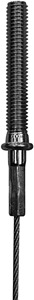 GRIPPLE Set-Gewindeende M 6, einschließlich Einschlaganker, schnelles Aufhängesystem, vielseitig einsetzbar und gebrauchsfertig, zur Befestigung an Betondecken. Die Verankerung des Einschlagankers erfolgt mittels Setzwerkzeug GASWZ. Die Tragfähigkeitsangaben F gelten nur bei ausreichender Verankerung mit dem tragenden Untergrund und vorschriftsmäßiger Montage. Set besteht aus: 1 abgelängtes Drahtseil mit Gewindeende 1 Einschlaganker 1 selbstsichernder GRIPPLE zur Schnellbefestigung 1 GRIPPLE Justier-/Entriegelungsstift (je kleinste VPE 1x beigepackt) Abmessungen (ca. Maße) Seil-Ø : 3 mm Seillänge L : 2 m Gewindeende/Einschlaganker : M 6 Tragfähigkeit zul. F : 0,9 kN (5-fache Sicherheit gegen Bruch) Werkstoff Drahtseil : Stahl, galvanisch verzinkt
