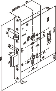 Sicherheitsschloss Mechanik 309X Volblatt-Version, Das Sicherheitsschloss Mechanik 309X wird vor allem dort eingesetzt, wo eine versicherungstechnische Verriegelung der Tür durch einen 20 mm Riegelausschluss gewährleistet sein muss., Mechanische Selbstverriegelung, Mit Kreuzfalle, daher für Türen DIN L / DIN R umstellbar, Mechanische Ablaufsteuerung der Selbstverriegelung zwischen Kreuzfalle und Steuerfalle, Einbruchhemmend durch massiven Riegel mit 20 mm Ausschluss, Einbruchhemmung bis Klasse WK2 in geeigneten Türsystemen erreichbar, Panikfunktion Zulassung nach EN 179 Zulassung nach EN 1125, Für Feuerschutztüren geeignet, Einsatz mit Wechselbeschlag, Wechselfunktion zur Entriegelung über Schlüssel von außen, Die Schlösser der Modell-Reihe 309X besitzen eine durchgehende Drückernuss und bedürfen somit eines Wechselbeschlags (innen Drücker oder Panikgriffstange, außen Knopf oder Griffstange).