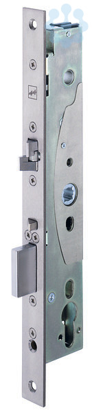 Sicherheitsschloss Motorausführung mit externer Steuerung 509X Rohrrahmen-Version, Das Sicherheitsschloss Motorausführung wird vor allem dort eingesetzt, wo der Vorteil einer motorischen Entriegelung mit den mechanischen Sicherheitsanforderungen der Schlossmodelle 309X und 409X kombiniert werden muss. Durch die integrierten Überwachungskontakte können wesentliche Schlosszustände abgefragt werden., Der Riegel wird durch einen Elektromotor eingezogen und durch einen Federmechanismus vorgespannt. Beim Schließen der Türe bewirkt die Steuerfalle das Ausschließen des vorgespannten Riegels und die Sperrung der Kreuzfalle, die somit als zusätzliche Verriegelung dient., Das Schloss arbeitet nach dem Arbeitsstromprinzip und bleibt bei Stromausfall verriegelt und kann nur mittels Schlüssel oder Betätigung des Innendrückers geöffnet werden., Mechanische Selbstverriegelung, Mit Kreuzfalle, daher für Türen DIN L / DIN R umstellbar, Mechanische Ablaufsteuerung der Selbstverriegelung zwischen Kreuzfalle und Steuerfalle, Einb