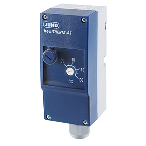 Durch sein schlagfestes Gehäuse aus hochwertigem Kunststoff ist der 1-polige mechanische Aufbaubauthermostat mit Umschaltkontakt sehr robust und kann auch unter rauen Bedingungen eingesetzt werden. Das verwendete Messsystem arbeitet nach dem Flüssigkeitsausdehnungsprinzip und kann bis zu einer maximal zulässigen Fühlertemperatur von 149 °C problemlos eingesetzt werden. Der glatte Rundfühler aus Kupfer hat einen Durchmesser von 6 mm bei einer Fühlerlänge von ca. 66 mm. Die Fernleitung des Thermostaten ist ebenfalls aus Kupfer und bei Auslieferung im Gehäuseinneren aufgerollt. Unter Beachtung eines Biegeradius von 5 mm kann die Fernleitung nach Bedarf aus dem Gehäuse herausgeführt und flexibel verlegt werden. Die im Lieferumfang enthaltene Schutzhülse aus Messing, vernickelt, hat einen Durchmesser von 8 mm und kann mit einem Gewinde G 1/2 Form A nach DIN 3852/2 montiert werden. Die maximal zulässige Umgebungstemperatur am Gehäuse (Schutzart IP54) beträgt 80 °C. Die Gehäusebefestigung erfolgt direkt am Gehäuseun