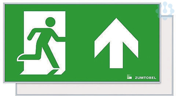 Sicherheitszeichen für PURESIGN 150 P MSC-WF/MRC-WF/MRCR-WF mit Aluminiumrahmen silber (RAL 7035 ähnlich), pulverbeschichtet, zur einfachen Montage auf die PURESIGN/COMSIGN 150 P Gehäuse für Seilabhängung, max. Seilabhängung: 1,5 m, gleichmäßige Hinterleuchtung des Piktogramms, Leuchtdichte > 500 cd/m² im weißen Bereich, Piktogramm per Digitaldruck auf die PC (Polycarbonat)- Scheibe aufgebracht, Sicherheitszeichen gemäß ISO 7010: 1seitig, Symbol: Rettungsweg/Notausgang. Richtungspfeil nach oben, Erkennungsweite gemäß EN 1838: 30 m, Abmessung: 310 x 20 x 160 mm, Gewicht: 0,72 kg