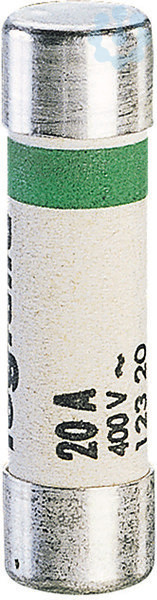 Legrand Zylindersicherung, Betriebsklasse gG (trägflink), Bemessungsstrom 20 A, Größe 8,5 x 31,5 mm, Bemessungsspannung 400 VAC, Ausschaltvermögen 20 kA, ohne Kennmelder, Betriebsklasse gG - Ganzbereichs-Schutz für allgemeine Zwecke, für Kabel- und Leitungsschutz.