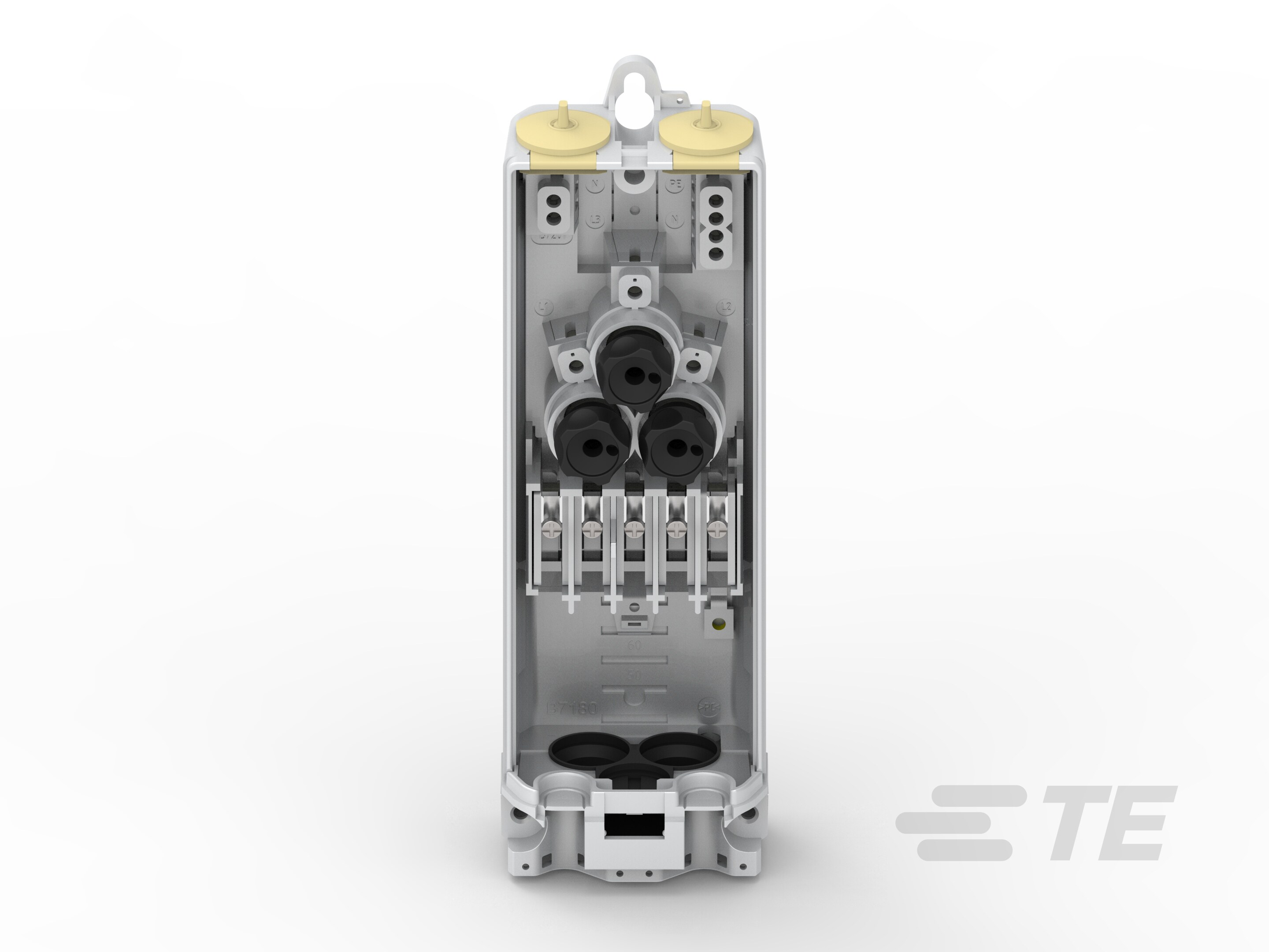 Übergangs- und Sicherungskasten EKM 2050 nach DIN / VDE 0660 T. 505 - mit VDE-Zeichen. Ausführung SK für Masteinbau und Montagen im Freien für Mast-Innen-Ø ab 89 mm. Für Türgröße ab 85 x 270 mm. Mit Kompakt-Einbaublock bestehend aus: 3 Stück Sicherungssockel 16 A / D01-E14,3 Stück Schraubkappen E 14. 5 Stück Schiebeklemmen, Netzform: L1,L2,L3,N,PE(N). Schienenverbindung (Messing- Schienen, vernickelt). Vollisolierte PE- und N- Abgangsklemmen. Transparenter Deckel mit Schnappverschluß, Berührungsschutz. Schutzklasse II, Schutzart IP 54. 2 Stück Mastbefestigungsschrauben M 6 x 12,vormontiertes Erdungsseil, 10 mm², grün/gelb 400 mm lang, mit Ringkabelschuh für Schraube M 8. Aderverzweigungsraum 60 mm. Zugang: Kabelschelle für 3 Kabel bis 5 x 16 mm². Abgang: 2 Stück Abgangstüllen. Zwei Leuchtenanschlußleitungen wahlweise auch nach unten parallel zum Zugangskabel montierbar!