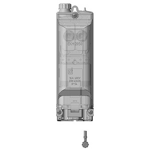 Übergangs- und Sicherungskasten EKM 2050 nach DIN / VDE 0660 T. 505. Ausführung SK (für Masteinbau) für Mast-Innen-Ø ab 96 mm. Für Türgröße ab 85 x 270 mm. 2 Stück Sicherungssockel 16 A / D01-E14. 2 Stück Schraubkappen E 14. 2 Stück Sicherungseinsätze 6A, 5 Stück Schiebeklemmen, mit Anschlußmöglichkeit für Erdungsseil. 4- facher Phasenwechsel möglich. PEN-Vorverdrahtung. Transparenter Deckel mit Schraubverschluß, Berührungsschutz. Schutzklasse II, Schutzart IP 54. 2 Stück Mastbefestigungsschrauben M 6 x 12,vormontiertes Erdungsseil, 10 mm², grün/gelb 400 mm lang, mit unverlierbarer Schraube M 8. Zugang: Kabelschelle für max. 3 Kabel bis 5 x 16 mm². Abgang: 1 Stück Abgangstülle, 1 Stück Stopfbuchse. Zwei Leuchtenanschlußleitungen wahlweise auch nach unten parallel zum. Zugangskabel montierbar!