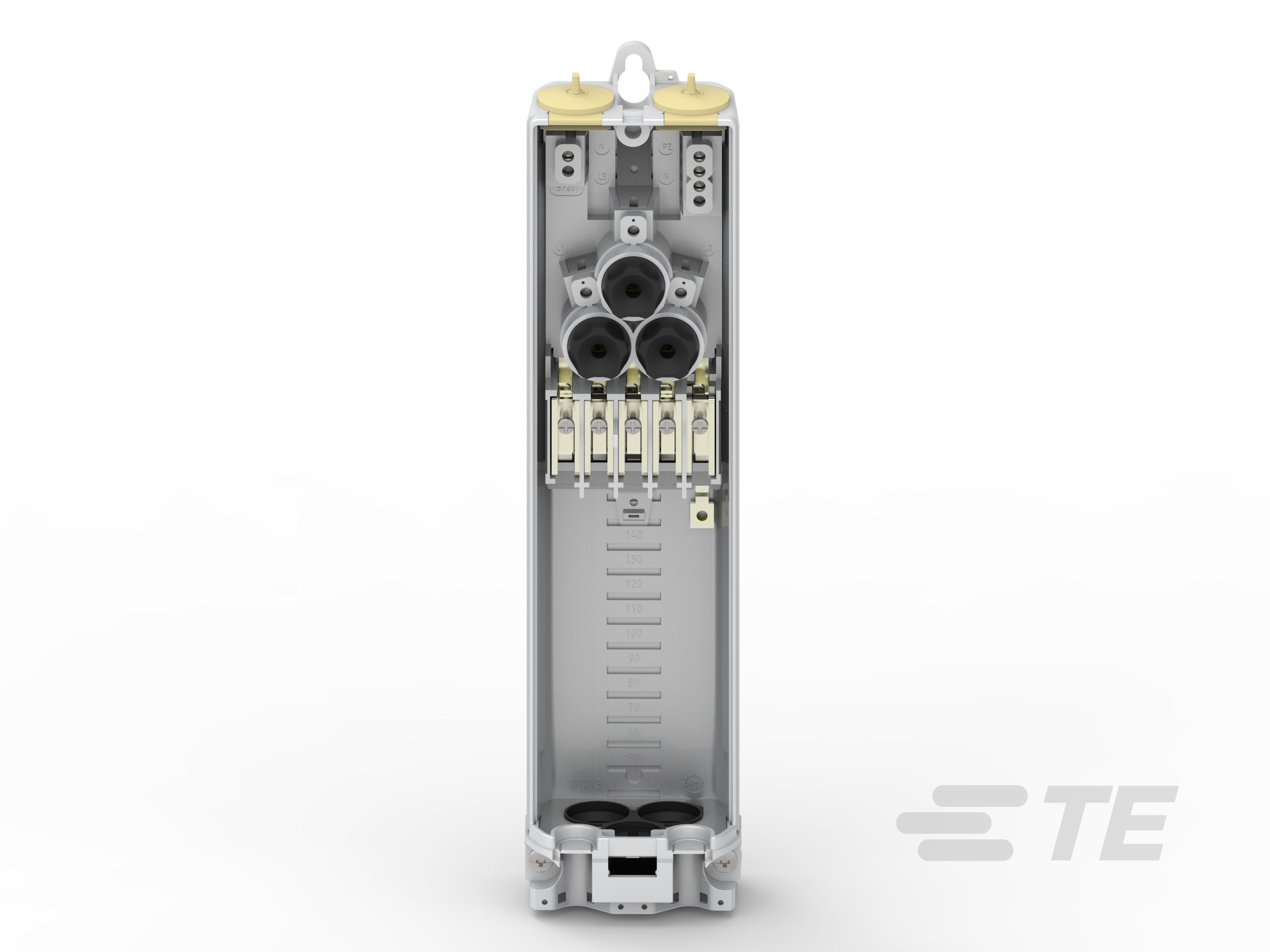 Übergangs- und Sicherungskasten EKM 2051 nach DIN / VDE 0660 T. 505 - mit VDE-Zeichen. Ausführung SK (für Masteinbau) für Mast-Innen-Ø ab 89 mm. Für Türgröße ab 85 x 350 mm. Mit Kompakt-Einbaublock bestehend aus: 3 Stück Sicherungssockel 16 A / D01-E14,3 Stück Schraubkappen E 14. 5 Stück Schiebeklemmen, Netzform: L1,L2,L3, N, PE(N). Universell einsetzbar für alle Netzformen. Schienenverbindung (Messing- Schienen, vernickelt). Vollisolierte PE- und N- Abgangsklemmen. Transparenter Deckel mit Schnappverschluß, Berührungsschutz. Schutzklasse II, Schutzart IP 54. Zugang: Kabelschelle für 3 Kabel bis 5 x 16 mm². Abgang: 2 Stück Abgangstüllen. Zwei Leuchtenanschlußleitungen wahlweise auch nach unten parallel zum. Zugangskabel montierbar!