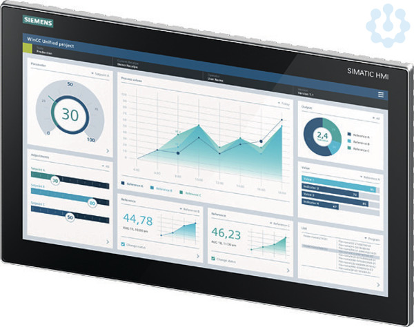 SIMATIC HMI MTP1900, Unified Comfort Panel, Touchbedienung, 18,5 Widescreen-TFT-Display, 16 MIO Farben, PROFINET Schnittstelle, projektierbar ab WinCC Unified Comfort V16, enthält Open Source SW, die unentgeltlich überlassen wird siehe beiliegende DVD SIMATIC HMI Unified Comfort Panels ermöglichen innovative Bedienkonzepte auf Basis der neuen Visualisierungssoftware SIMATIC WinCC Unified. Alle Geräte, in den Größen von 7 bis 22 Zoll bieten die gleiche Anzahl an Schnittstellen sowie maximalen Bedienkomfort dank moderner Multitouch-Technologie. Die neue Hardware bietet zudem deutlich mehr Leistung für die Umsetzung der Visualisierung. Die Systemlimits wurden mindestens verdoppelt, teilweise sogar verdreifacht. Das ermöglicht die Umsetzung von deutlich größeren Applikationen als bisher auf einem Panel-System. Die Funktionalität der Geräte kann durch die integrierte Edge-Funktionalität nach Bedarf einfach erweitert werden. Um die IT-Sicherheit der Geräte zu gewährleisten, setzt Siemens auf ein proprietäres Betrie