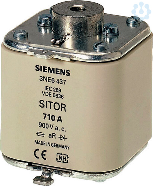 SITOR-Sicherungseinsatz, mit beidseitigem Innengewinde, In: 250 A, aR, Un AC: 680 V, Un DC: 440 V, Stirnkennmelder Halbleiterschutzsicherungen SITOR 3NE, 3NC schützen Leistungshalbleiter vor den Auswirkungen eines Kurzschlusses. Das SITOR-Sicherungssystem von Siemens als wichtiger Bestandteil der SENTRON Schutzkomponenten für die Elektroinstallation bietet effektiven Personen-, Geräte- und Anlagenschutz durch sicheres Abschalten im Überlast- und Kurzschlussfall. Der Einsatzbereich umfasst zusätzlich Frequenzumrichter mit Sicherungen im Eingangs- und im DC-Zwischenkreis sowie auch USV-Anlagen und Sanftstarter für Motoren. Die Siemens SITOR-Sicherungen zeichnen sich vor allem aus durch: 1. Superflinke Abschaltcharakteristik im Vergleich zu herkömmlichen NH-Sicherungen. 2. Auch Leistungshalbleiter werden bei Kurzschluss sicher geschützt. 3. Der Siemens Qualitätsstandard sichert eine sehr gute Kennlinientreue. 4. SITOR-Zylindersicherungen sind nach IEC und UL und größtenteils auch CCC zugelassen und damit weltwei