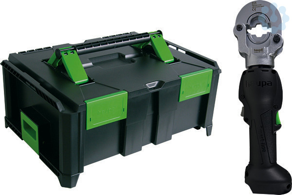 Akkuhydraulisches Presswerkzeug ?S0-6?, ohne Zubehör, in SysCon-StapelboxHydraulik für auswechselbare Presseinsätze, Presskopf 180° drehbar, mit Schnellöffnung, manueller Rücklauf nach vollendeter Pressung. Lieferumfang: 1 Presswerkzeug, 1 Tragegurt, in SysCon-Stapelbox ? Presskraft kN: 60 kN ? Arbeitsdruck in bar: 700 ? Kopf aufklappbar ? Öffnung / Hub: 17 mm ? Pressbreite: schmal ? Presszeit akkubetrieben in Sekunden: 5 ? Pressbereich Kabelschuhe: standard Cu 6-300 ? DIN Cu 6-300 ? DIN Al 16-240 ? Pressbereich Verbinder: standard Cu 6-300 ? DIN Cu 6-300 ? DIN Al 16-240