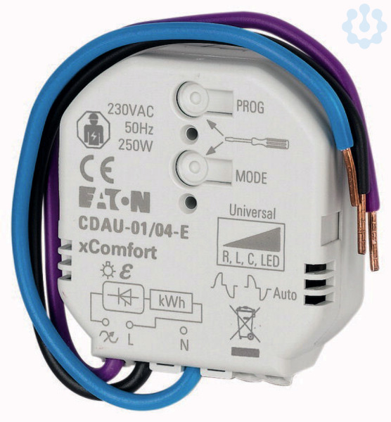 Dimm-Betätigungselement in kleiner Bauform 0?250 W/230 VAC mit Energiemessung. Geeignet zum Dimmen verschiedenster Lasten einschließlich dimmbarer und nicht dimmbarer LEDs (Ein/Aus). Dimmt selbst kleinste LED-Lasten ab 0 W! Einfache Auswahl oder Definition eines Dimmprofils für eine optimale Dimmleistung. Energieeffizient. Kurzschluss-, Überlast- und Übertemperaturschutz mit automatischer Rücksetzfunktion. Kompakte Bauform für den Einbau hinter Schalter, Taster, Bewegungssensoren, Wandsteckdosen oder in Verteilerdosen.