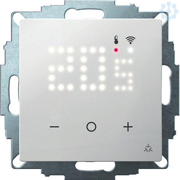 Smart Home fähiger Unterputz-Raumregler passend in alle gängigen Schalterprogramme. Aktivweiß glänzend, 55x55 Format ohne Rahmen. Geeignet für wassergeführte Heizsysteme (voreingestellt). Installation ohne WiFi-Anbindung möglich. Einbindung in alle gängigen Smart Home Apps z.B. Google Home, Apple Home, Amazon Alexa via Matter WiFi-Standard möglich. Programmierbare Uhrenfunktion in Smart Home App einstellbar. Punkt-Matrix-LED in weiß, kurzzeitig ein nach Tastendruck. Unbefugtensicherung. Frostschutzfunktion. Einstellbereich der Temperatur begrenzbar. Ventilschutz. Reglerverfahren PWM oder 2-Punkt einstellbar. Heizen/Kühlen Umschaltung, Präsenz-/Absenkeingang. Anpassbar an Ventile stromlos offen. Montage in 55er UP-Dose