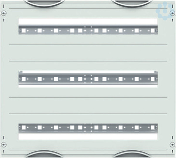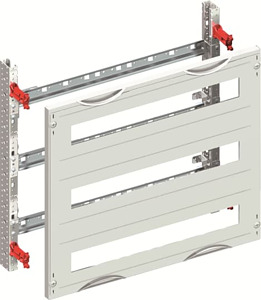 Innenausbau Modul, CombiLine, Bausatz unmontiert, für SMISSLINE TP Geräteeinbau horizontal, Rasteinheit 3 RE = 450 mm, Feldbreite 2 = 500 mm, 72 Platzeinheiten, Reihenabstand: 150, Ausbau mit Hutprofilschiene 35 x 15 mm mit Lochung für Drahthalter, für Stecksockellänge 3 x 22 Platzeinheiten, Abdeckungen aus Kunststoff, 90 Grad Druck-Drehverschluss, RAL 7035, Ausführung der Abdeckung: mit Ausschnitt, einsetzbar ab einer Schranktiefe von 215 mm, EDF oder WR Montagegerüst muss separat bestellt werden