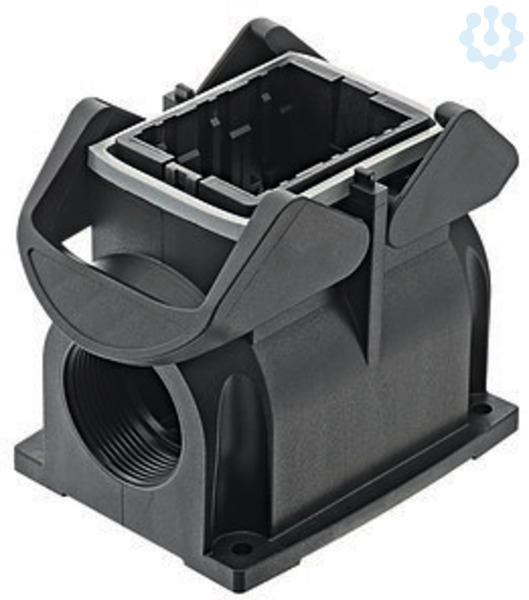 Sockelgehäuse, Baugröße: 6 B, Querbügel, Polyamid (PA), glasfaserverstärkt, seitlicher Kabeleingang, 2x M32, Werkstoff Gehäuse: Polyamid (PA), glasfaserverstärkt, RAL 9005 (tiefschwarz), Werkstoff Dichtung: FPM, Schutzart: IP65