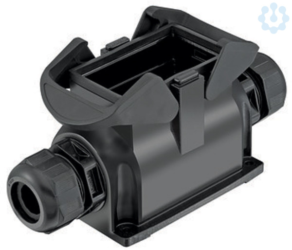 Sockelgehäuse, Mit integrierter Kabelverschraubung, Baugröße: 10 B, Querbügel, Polyamid (PA), glasfaserverstärkt, seitlicher Kabeleingang, 2x M32, Werkstoff Gehäuse: Polyamid (PA), glasfaserverstärkt, RAL 9005 (tiefschwarz), Werkstoff Dichtung: NBR, Schutzart: IP65