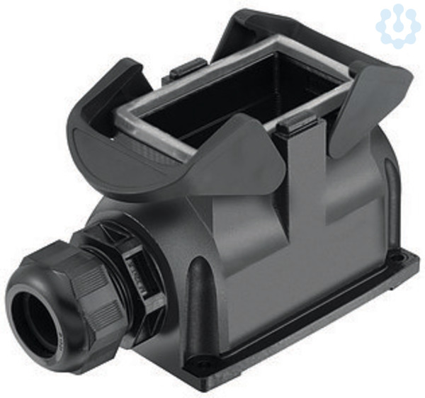 Sockelgehäuse, Mit integrierter Kabelverschraubung, Baugröße: 10 B, Querbügel, Polyamid (PA), glasfaserverstärkt, seitlicher Kabeleingang, 1x M32, Werkstoff Gehäuse: Polyamid (PA), glasfaserverstärkt, RAL 9005 (tiefschwarz), Werkstoff Dichtung: FPM, Schutzart: IP65
