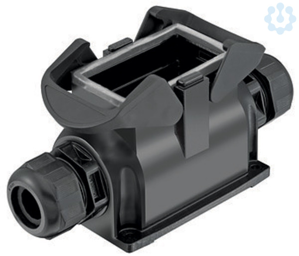 Sockelgehäuse, Mit integrierter Kabelverschraubung, Baugröße: 10 B, Querbügel, Polyamid (PA), glasfaserverstärkt, seitlicher Kabeleingang, 2x M32, Werkstoff Gehäuse: Polyamid (PA), glasfaserverstärkt, RAL 9005 (tiefschwarz), Werkstoff Dichtung: FPM, Schutzart: IP65