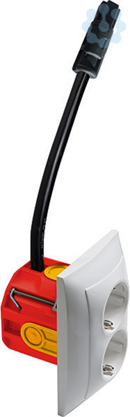 2-polig, 10/16 A 250 V~, mit schwarzem Kodierstecker A, für die Montage in Hohlwänden, inkl. Brandschutz-Hohl- wanddose, mit vorkonfek tionierter Kabelpeitsche, Kabel- länge 30 cm