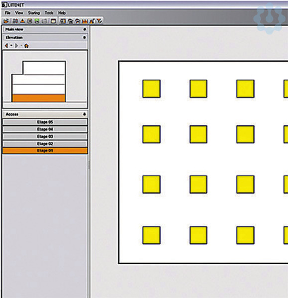 LITENET graphics basic 10.000 Softwarelizenz für grafische Oberfläche in schematischer Darstellung Schematische Visualisierung Visualisierung und Navigation: -Darstellung und Navigation des Gebäudes oder einzelner Gebäudeteile -Darstellung des Gebäudes and Anwahl einzelner Etagen in der Vorderansicht -Darstellung einzelner Etagen aus der Vogelperspektive mit der Möglichkeit einzelne Elemente, z.B. Leuchten oder Bedienkollektive wie Räume und Gruppen anwählen zu können. -Freies Verschieben des Sichtbereichs in alle Richtungen -Stufenlose Zoomfunktion Überwachung: -Detail- und Schnellübersicht (Quick-Info) zu den Gewerken Licht, Jalousie und Fenster -Grafische Darstellung des aktuellen Zustands, z.B. Dimmlevel oder Position der Jalousie -Optische Kennzeichnung von Alarmen -Integration der Sicherheitsbeleuchtung Bedienung: -Integriertes Bedienpanel für die Gewerke Licht, Jalousie und Fenster -Frei definierbare Bedienbuttons für Steuerungsbefehle oder Befehlsketten Editierbarkeit: -Zahlreiche Editorfunktionen um