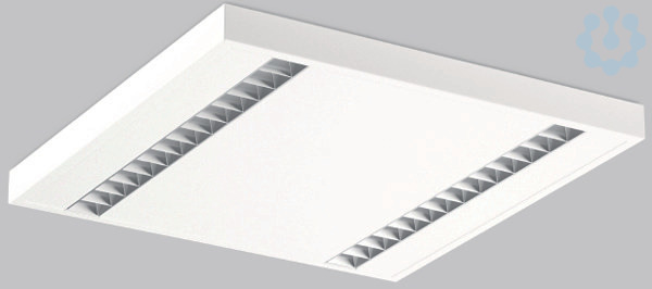 Hocheffiziente LED-Rasteranbauleuchte. Gehäuse Metall pulverbeschichtet. Alea Optik System: Reflektorstruktur (ABS, Aluminium bedampft, hochglänzend) mit integriertem Diffusor aus vergilbungsfreiem Kunststoff (PMMA) opal für blendfreies Licht am Arbeitsplatz. Tiefstrahlende, brillante Lichtwirkung. Geeignet für Deckenanbau. Betriebsgerät integriert. Hervorragend geeignet für Bürobereiche (UGR < 19) und Bildschirmarbeitsplätze (BAP) gem. DIN EN 12464-1.