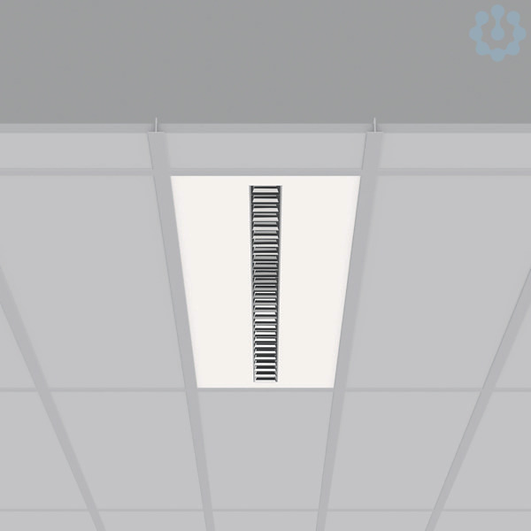Hocheffiziente Einlegeleuchte für Deckensysteme mit sichtbaren Tragschienen. Gehäuse Metall pulverbeschichtet. Alea Optik System: Reflektorstruktur (ABS, Aluminium bedampft, hochglänzend) mit Diffusor aus vergilbungsfreiem Kunststoff (PMMA) opal für blendfreies Licht am Arbeitsplatz. Tiefstrahlende, brillante Lichtwirkung. Geeignet für Deckeneinbau. Betriebsgerät integriert. Hervorragend geeignet für Bürobereiche (UGR ? 19) und Bildschirmarbeitsplätze (BAP) gem. DIN EN 12464-1.