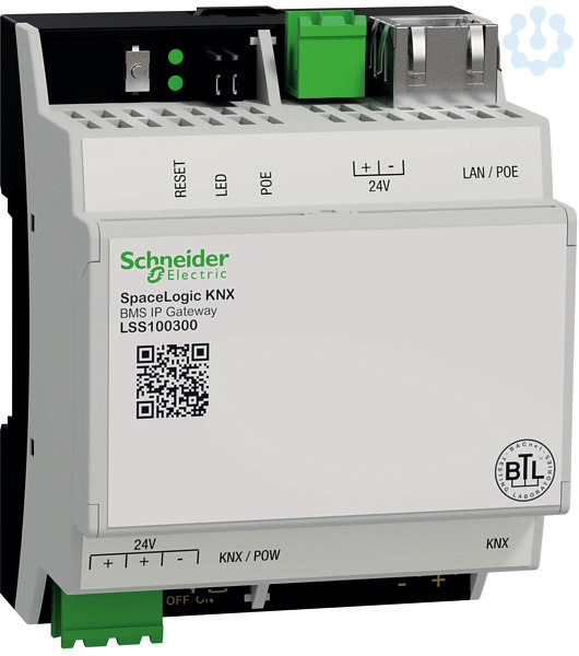 Das SpaceLogic KNX BMS IP Gateway ist ein bidirektionales Multifunktionsgerät, das die Integration von KNX-Installationen mit Geräten der Gebäudeautomation ermöglicht. Die Hauptkommunikationsschnittstelle ist KNX TP und IP mit Unterstützung des BACnet-Protokolls. Es sind drei Komponenten in einem Gerät vereint: KNX IP-Router (max. 500 Objekte), KNX IP-Schnittstelle und DPSU-Drossel-Stromversorgung. Das Gateway ermöglicht es professionellen Installateuren, KNX-Installationen dank einer Kombination von Funktionen kosten- und zeiteffizienter zu installieren. Die Konfiguration und Inbetriebnahme ist dank der eingebetteten Anwendung, die den Prozess vereinfacht, einfach und schnell. Die Architektur kann einfacher sein, da die Verwendung von IP-Routern und KNX-Stromversorgungen unter Berücksichtigung bestimmter Parameter nicht mehr notwendig ist. Das Gateway ist für kommerzielle Installationen konzipiert und von BTL als anwendungsspezifischer Controller (B-ASC) zertifiziert, was eine 100%ige Kompatibilität gewährle