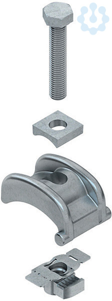 Spannpratze, komplett mit Sechskantschraube SK 12X65 DIN 931 und Gleitmutter mit Fixierhilfe M 12, zur Befestigung von Abhängungen an Doppel T-Trägerprofile, die Tragfähigkeit der Abhängung ist abhängig vom Typ der C-Profilschiene, der Flanschstärke und Flanschbreite des Doppel T-Trägerprofils. für Schienenprofil : (2988 mit Schlitzweite 18 mm) 2996Z mit Schlitzweite 22 mm für Flanschstärke t : 0 - 25 mm Schraubenanzugsmoment : 84 Nm Werkstoff : Stahl, feuerverz. nach DIN EN ISO 1461