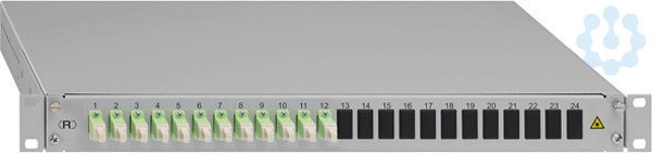 Spleissbox, ausziehbar, 19'/1HE, 12xLC-D, OM5, grün, - pulverbeschichtetes Stahlblechgehäuse, - werkseitige Portkennzeichnung, - mit Gleitauszug, Auszugtiefe ca. 20 cm, - im geöffneten Zustand nach unten neigbar, - mit Rändelschrauben verschließbar, - 40 mm rückversetzbare Box, - Spleisskassette zur Aufnahme von 12 oder 24 Pigtails, - mit max. 4 Spleisskassetten bestückbar (fixiert), - eingelegter Crimpspleisshalter, - spleissfertig vorbereitet mit abgesetzten und eingelegten Pigtails inkl. 12 x LC-D - Keramik-Kupplungen, - LC-Faserpigtails G50/125 Ám, 2 m, MM PC, Grade B, - mit Messprotokoll für alle Fasern inkl. Seriennummer, - 12 montierte Blindstopfen, - 4 x rückseitige PG16-Verschraubungen (je 2 x rechts/links), - 1 x PG16-Verschraubung im Lieferumfang, - lichtgrau (ähnlich RAL 7035)