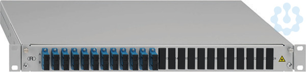 Spleissbox, ausziehbar, 19'/1HE, 12xSC-D, OS2, blau, - pulverbeschichtetes Stahlblechgehäuse, - werkseitige Portkennzeichnung, - mit Gleitauszug, Auszugtiefe ca. 20 cm, - im geöffneten Zustand nach unten neigbar, - mit Rändelschrauben verschließbar, - 40 mm rückversetzbare Box, - Spleisskassette zur Aufnahme von 12 oder 24 Pigtails, - mit max. 4 Spleisskassetten bestückbar (fixiert), - eingelegter Crimpspleisshalter, - spleissfertig vorbereitet mit abgesetzten und eingelegten Pigtails inkl. 12 x SC-D - Keramik-Kupplungen, - SC-Faserpigtails E9/125 Ám, 2 m, SM PC, Grade B, - mit Messprotokoll für alle Fasern inkl. Seriennummer, - 12 montierte Blindstopfen, - 4 x rückseitige PG16-Verschraubungen (je 2 x rechts/links), - 1 x PG16-Verschraubung im Lieferumfang, - lichtgrau (ähnlich RAL 7035)