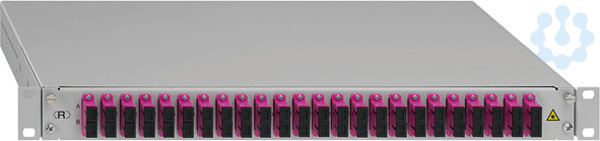 Spleissbox, ausziehbar, 19'/1HE, 24xSC-D, OM4, erika, - pulverbeschichtetes Stahlblechgehäuse, - werkseitige Portkennzeichnung, - mit Gleitauszug, Auszugtiefe ca. 20 cm, - im geöffneten Zustand nach unten neigbar, - mit Rändelschrauben verschließbar, - 40 mm rückversetzbare Box, - 2 Spleisskassetten zur Aufnahme von 12 oder 24 Pigtails, - mit max. 4 Spleisskassetten bestückbar (fixiert), - eingelegter Crimpspleisshalter, - spleissfertig vorbereitet mit abgesetzten und eingelegten Pigtails inkl. 24 x SC-D - Keramik-Kupplungen, - SC-Faserpigtails G50/125 Ám, 2 m, MM PC, Grade B, - mit Messprotokoll für alle Fasern inkl. Seriennummer, - 4 x rückseitige PG16-Verschraubungen (je 2 x rechts/links), - 1 x PG16-Verschraubung im Lieferumfang, - lichtgrau (ähnlich RAL 7035)