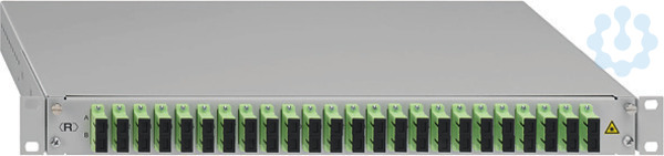 Spleissbox, ausziehbar, 19'/1HE, 24xSC-D, OM5, grün, - pulverbeschichtetes Stahlblechgehäuse, - werkseitige Portkennzeichnung, - mit Gleitauszug, Auszugtiefe ca. 20 cm, - im geöffneten Zustand nach unten neigbar, - mit Rändelschrauben verschließbar, - 40 mm rückversetzbare Box, - 2 Spleisskassetten zur Aufnahme von 12 oder 24 Pigtails, - mit max. 4 Spleisskassetten bestückbar (fixiert), - eingelegter Crimpspleisshalter, - spleissfertig vorbereitet mit abgesetzten und eingelegten Pigtails inkl. 24 x SC-D - Keramik-Kupplungen, - SC-Faserpigtails G50/125 Ám, 2 m, MM PC, Grade B, - mit Messprotokoll für alle Fasern inkl. Seriennummer, - 4 x rückseitige PG16-Verschraubungen (je 2 x rechts/links), - 1 x PG16-Verschraubung im Lieferumfang, - lichtgrau (ähnlich RAL 7035)