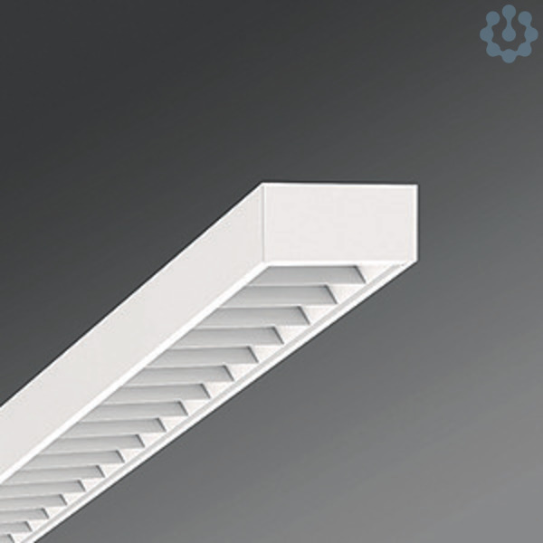 Stahlblechgehäuse Lichtverteilung direkt breitstrahlend mittels Metallraster, Stahlblech, mit stabilen, glatten Querlamellen, weiß lackiert ähnlich RAL 9016, mit V-Reflektor, einseitig abklappbar, ballwurfsicher. Rasterbefestigung über federnde, ballwurfsichere Verschlüsse, die nur mit Werkzeug zu öffnen sind, Bestückung 1x Regiolux LED-Einheit Lichtfarbe neutralweiß (840) mit sehr guter Farbkonsistenz und hoher Farbwiedergabe Ra>80, Elektrischer Anschluss über 3-polige Anschlussklemme in Steckkontakt-Technik.