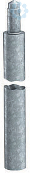 Standard Staberder, Durchmesser 25 mm, höchste Korrosionsbeständigkeit durch Zinkauflage von ca. 130 µm. Runder Zapfen mit drei Rändelungen und Bohrung zum Anreihen. Entspricht den Anforderungen nach VDE 0185-305 (IEC 62305). Kurzschlussstrom Ik (50 Hz), Zeit 1 s, Temp. max. 300 °C: 12,3 kA.