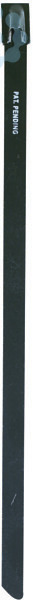 Stahl-Kabelbinder aus Edelstahl 316 (DIN 14401), mit Kugelverschluss, korrosions- und strahlenbeständig, antimagnetisch, äußerst beständig gegen hohe Temperaturen (Stahl -80 Grad C bis +538 Grad C) und aggressive Chemikalien, Stahldicke 0, 25mm, Spez. /Zulassung UL. Zur Anwendung im Maschinen-, Fahrzeug-, Signal-, Schiff- und BergBau, in der Lebensmittel- und chemischen Industrie, in Kraftwerken, U-Bahnen, Gebäuden, Schaltschränken, auf Bohrinseln usw. , mit Kabelbeschichtung aus Epoxydharz-Polyester, halogenfrei, schwarz, BxL 7, 9x360mm, KabelBaum¸ 102mm, 122kp/1200N.