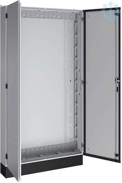 Standgehäuse, 225 mm tief, Baureihe SE, geerdet K. Außenmaße B x H x T (mm) 1050 x 1980 x 225. Breite 4. Höhe 12. PLE 576. Standgehäuse, 225 mm tief, Baureihe SE. Schutzklasse II (Baureihe SP), Schutzklasse I (Baureihe SE). Schutzart: IP54. Für Geräte bis 630?A. Standmontage mit Außenbefestigung. Breiten: 300, 550, 800, 1050, 1300?mm. Höhe: 1980?mm, inklusive 130?mm Sockel, montiert. Tiefe: 225?mm. Farbe: RAL 9016 (verkehrsweiß). Platzeinheiten: 144 bis 720. Material: 1,5 mm (Türen 2 mm) Stahlblech, pulverbeschichtet . Beidseitig vorgeprägt für Gehäuseverbindungen M6. Leitungseinführungen 2K-Membranflansch unten 35x, oben 35x pro Feld. Kombinierbar waagerecht und senkrecht. Tür aufliegend, rechts oder links anschlagbar mit Öffnungswinkel 270°, 3 mm-Doppelbartverschluss mit 3-Punkt-Stangenverschluss. Vorbereitet für den Einbau von standardisierten Modulbausätzen auf. NT-Trägerprofilen oder für durchgehende Montageplatten. DIN EN 61439-1 (VDE0660 Teil 600-1).