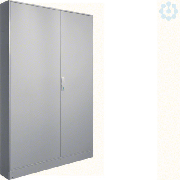 Schrank, univers, IP54/II, 1950x1300x205mm. Einzelstandverteiler für die Innenraummontage mit VDE-Gutachten (Fertigungsüberwachung) nach DIN EN 61439-1/-2/-3 und Maßnorm DIN 43870. Zum Aufbau einer Niederspannungsverteilung bis 400 A, 3AC 230/400 V 50 Hz. Schutzart IP54, Schutzklasse II, Luft- und Kriechstrecken nach DIN VDE 0110-1/-2. Bestehend aus Schrank mit Tür aus pulverbeschichtetem, eingebranntem, stabil profiliertem 1 mm dickem Stahlblech, Innenauskleidung aus Kunststoff. Durchsteckflansche oben eingebaut und unten offen, rückseitige Vorprägung im Kunststoffteil und Sammelschienendurchführungen als beidseitige seitliche Vorprägung im unteren Bereich. Waagerechte Abfangschiene zur Stabilisierung im Schrank enthalten. Tür frontbündig mit innenliegenden, justierbaren Scharnieren, wahlweise rechts oder links anschlagbar mit 110 Grad Öffnungswinkel. Tür mit Stangenverschluß mit Dreipunktschließung. Türverschluß durch andere Schließungen austauschbar. Schrank nebeneinander anflanschbar. Sockelleiste (Höhe 1