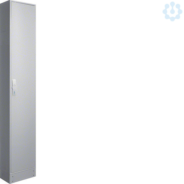 Schrank, univers, IP44/I, 1950x300x205mm, leer. Einzelstandverteiler für die Innenraummontage, mit VDE-Gutachten (Fertigungsüberwachung) nach IEC 439, entspricht VDE 0660-500 und DIN EN 61439, Maßnorm DIN 43870 zur Aufputzmontage. Zum Aufbau einer Niederspannungsverteilung bis 355 A, 3AC 230/400 V 50 Hz. Schutzart IP44/IP54, Luft- und Kriechstrecken nach DIN VDE 0110-1/-2. Bestehend aus Schrank mit Tür aus pulverbeschichtetem, eingebranntem, stabil profiliertem 1 mm dickem Stahlblech. Innenauskleidung aus Kunststoff. Universalleitungseinführungen oben und unten je Feld eingebaut(Schutzklasse I unten offen), rückseitige Vorprägung im Kunststoffteil und Sammelschienendurchführungen als beidseitige seitliche Vorprägung im unteren Bereich. Waagerechte Abfangschiene zur Stabilisierung im Schrank enthalten. Tür frontbündig mit innenliegenden, justierbaren Scharnieren, wahlweise rechts oder links anschlagbar mit 110 Grad Öffnungswinkel. Türverschluss mit (Keine Vorschläge) mit Dreipunktschließung. Türverschluss durc