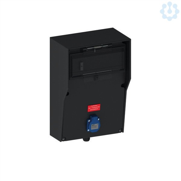 Stationärer Trenntransformator im ELSPRO-Vollgummigehäuse, der Baureihe TRIER, Eingang: 1 Kabelverschraubung M20 von unten, Einbauten: 1 Trenntransformator 1000 VA, 230 V/230 V, * primär abgesichert über einen thermischen Überstromschutzschalter, Ausgang: 1 Schutzkontaktsteckdose, (ohne Erdkontakt), Ausführung: - K2 Ausführung, - schutzisoliert und spritzwassergeschützt, - Transformator nach VDE 0570, - der Schutzschalter ist von außen zugänglich und liegt hinter einem schlagfesten Lexan-Sichtklappenfenster, selbstschließend