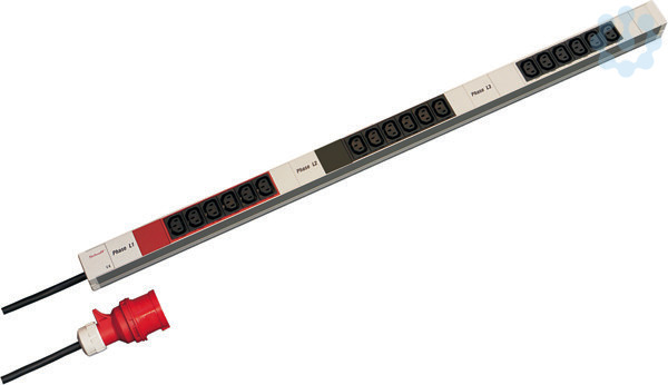 400 V, 32 A (mit 6 x 16 A Sicherung), 16 A (ohne Sicherung). Steckdosenleisten mit IEC-Buchsen nach IEC 60320 (C13 oder C13/C19). Montage vertikal. Steckdosenleisten beim Einbau in alle vier Richtungen (in 90°-Schritten) drehbar. Anschlussleitung 2 m, 3 Phasen, mit Anschlussstecker nach IEC 60309 (16 A oder 32 A). Einbauhöhe 1 HE.