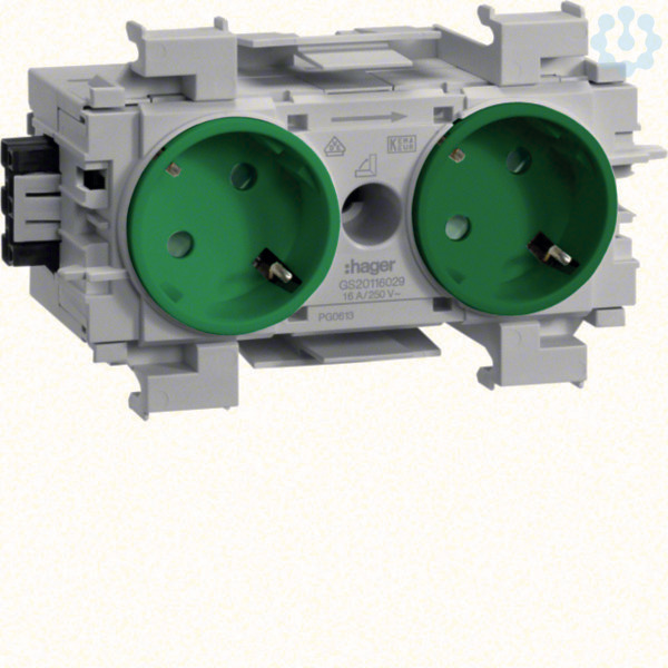 Steckdose 2-fach 45° mit Wago Steck-/Klemmtechnik Frontrastend in minzgrün. Kanalsteckdose 2-fach mit erhöhtem Berührungsschutz, Steckdosentopf 45 Grad, vorverdrahtet, mit Schnellbefestigung für frontrastender Geräteeinbau, anreihbar durch 3-poliges Steckverbindersystem. Leitungsanschluss über Steckklemmen 1,5 - 2,5 mm² oder über verpolungssicheres Steckverbindersystem.