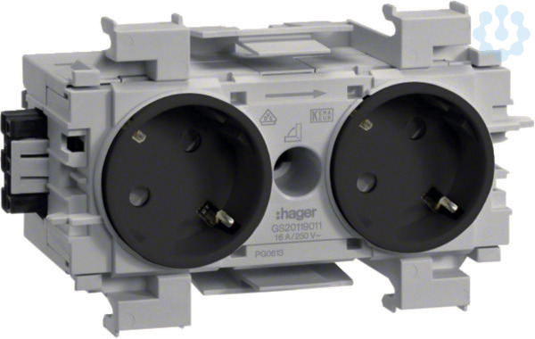 Steckdose 2-fach 45° mit Wago Steck-/Klemmtechnik Frontrastend in graphitschwarz. Kanalsteckdose 2-fach mit erhöhtem Berührungsschutz, Steckdosentopf 45 Grad, vorverdrahtet, mit Schnellbefestigung für frontrastender Geräteeinbau, anreihbar durch 3-poliges Steckverbindersystem. Leitungsanschluss über Steckklemmen 1,5 - 2,5 mm² oder über verpolungssicheres Steckverbindersystem.
