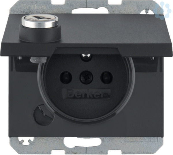 Steckdose m. Erdstift, Schraub-Liftklemmen,Klappd.,Schloss, K.1 ,anthrazit matt. Steckdose mit Schutzkontaktstift, Klappdeckel und Schloss, ungleiche Schließungen, 2-polig + Erde, Ersatzschlüssel und andere Schließungen (max. 24) auf Anfrage.