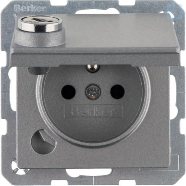 Steckdose m. Erdstift, Steckklemme,Klappd.,Schloss, Q.1,alu matt,lack.