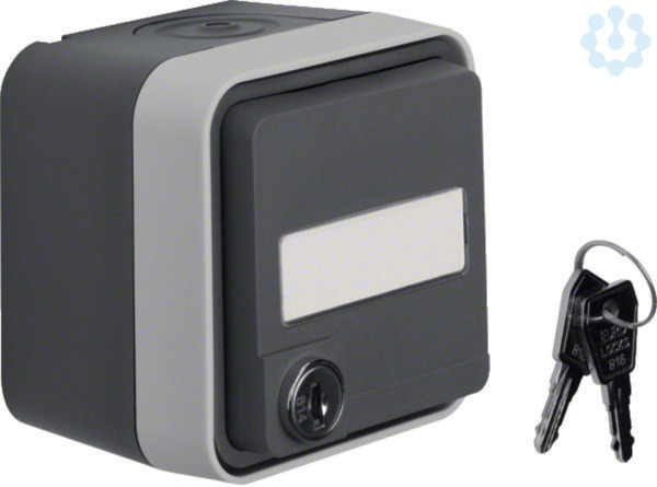 Steckdose SCHUKO mit Klappd. Beschriftungsfeld,ungl. Schließung AP W.1 grau. Steckdose SCHUKO® mit Klappdeckel AP - Beschriftungsfeld - Schloss - erhöhter Berührungsschutz, IP55, mit Schloss - ungleiche Schließungen. Für z.B. Waschmaschine, mit 2 Schlüsseln, Beschriftungsfeld ca. 50 x 16 mm, Beschriftungsfeldhöhe für P-touch Band 12 mm ausgelegt, mit Steckklemmen, mit einer Einführung für 2 Leitungen und einer Einführung für Leitung oder Rohr, vollflächige Dichtung unter dem Gehäuseboden zur Abdichtung der Gehäuserückseite, mit zufallendem Klappdeckel, manuell einrastbar, um den Schutzgrad IP55 zu erreichen, gut zugängliche, trichterförmige Montagelöcher in den Gehäusen, eine Wago 2-Leiter Verbindungsklemme für Verdrahtung beiliegend, zwei Einrastplätze für Wago 2-Leiter Verbindungsklemmen im Gehäuseboden, viel Platz zur Verdrahtung unter den Sockeln der Einsätze (Hohlboden), einfache Montage des Einsatzes im Gehäuse durch Einrasten, sichere Fixierung des Rahmens am Gehäuse über Bajonett-Schnellverschluss, Er