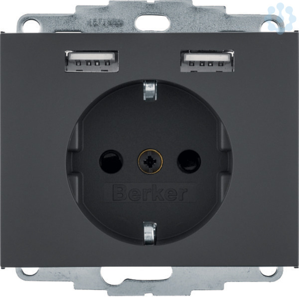 Steckdose SCHUKO/USB, K.1, anthrazit matt, lackiert. Steckdose SCHUKO mit 2 USB-Buchsen Typ A zum Laden mobiler Endgeräte, wie z.B. Tablets, Smartphones, Navigationsgeräte und Digitalkameras über USB-Kabel, kurzschlussfest und überlastsicher (elektronische Sicherung), für Unterputz- und Hohlwandmontage, mit Steckklemmen.Steckdose SCHUKO mit 2 USB-Buchsen Typ A zum Laden mobiler Endgeräte, wie z.B. Tablets, Smartphones, Navigationsgeräte und Digitalkameras über USB-Kabel, kurzschlussfest und überlastsicher (elektronische Sicherung), für Unterputz- und Hohlwandmontage, mit Steckklemmen.