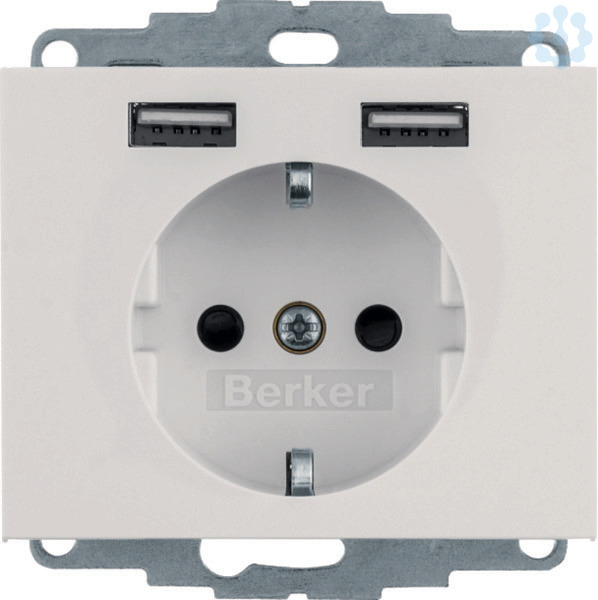 Steckdose SCHUKO/USB, K.1, polarweiß glänzend. Steckdose SCHUKO mit 2 USB-Buchsen Typ A zum Laden mobiler Endgeräte, wie z.B. Tablets, Smartphones, Navigationsgeräte und Digitalkameras über USB-Kabel, kurzschlussfest und überlastsicher (elektronische Sicherung), für Unterputz- und Hohlwandmontage, mit Steckklemmen.Steckdose SCHUKO mit 2 USB-Buchsen Typ A zum Laden mobiler Endgeräte, wie z.B. Tablets, Smartphones, Navigationsgeräte und Digitalkameras über USB-Kabel, kurzschlussfest und überlastsicher (elektronische Sicherung), für Unterputz- und Hohlwandmontage, mit Steckklemmen.
