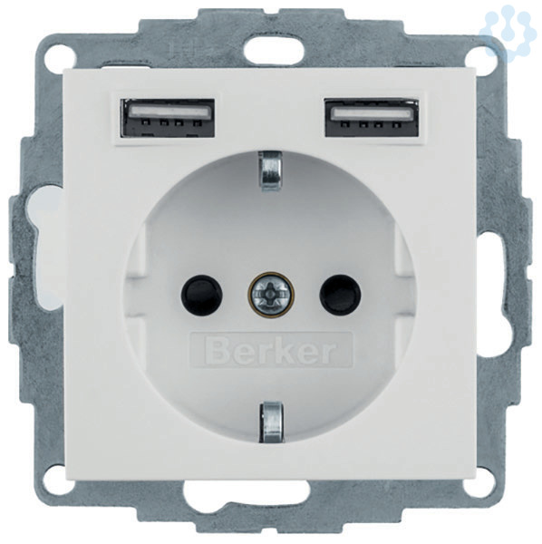 Steckdose SCHUKO/USB, S.1/B.x, polarweiß matt. Steckdose SCHUKO mit 2 USB-Buchsen Typ A zum Laden mobiler Endgeräte, wie z.B. Tablets, Smartphones, Navigationsgeräte und Digitalkameras über USB-Kabel, kurzschlussfest und überlastsicher (elektronische Sicherung), für Unterputz- und Hohlwandmontage, mit Steckklemmen.Steckdose SCHUKO mit 2 USB-Buchsen Typ A zum Laden mobiler Endgeräte, wie z.B. Tablets, Smartphones, Navigationsgeräte und Digitalkameras über USB-Kabel, kurzschlussfest und überlastsicher (elektronische Sicherung), für Unterputz- und Hohlwandmontage, mit Steckklemmen.