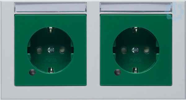 Doppel-Steckdose SCHUKO® NOVA mit WAGO Winsta-Steckverbinder, mit zwei Beschriftungsfeldern, LED-Kontrolllicht und grünem Sockel