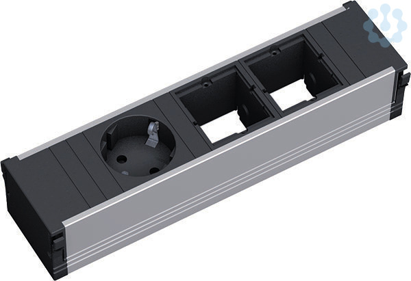 CONI Steckdoseneinheit ALU Länge: 3-fach / 217mm mit erhöhtem Berührungsschutz. 1xSchutzkontaktsteckdose sw. 2xCustom Module leer. Stromeingang: 0,20m H05VV-F 3G1,50mm² schwarz mit Wieland GST18 Steckverbinder.