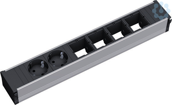 CONI Steckdoseneinheit ALU Länge: 6-fach / 356mm mit erhöhtem Berührungsschutz. 2xSchutzkontaktsteckdose sw. 4x Custom Module leer. Stromeingang: 0,20m H05VV-F 3G1,50mm² schwarz mit Wieland GST18 Steckverbinder.