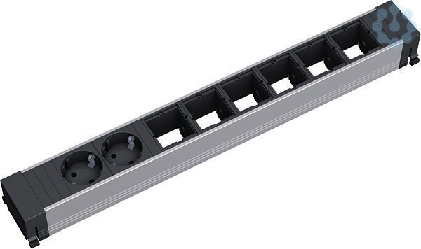 CONFERENCE Steckdoseneinheit ALU Länge: 442,8mm mit erhöhtem Berührungsschutz, 2xSchutzkontaktsteckdose sw. 6xCustom Module leer. GST18 Stromein- und ausgang. verpackt im Karton